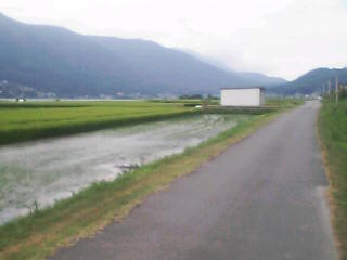 このへっぽこ写真ではわかりにくいですが道の左側は水路の向こうに田んぼゾーンが広がり